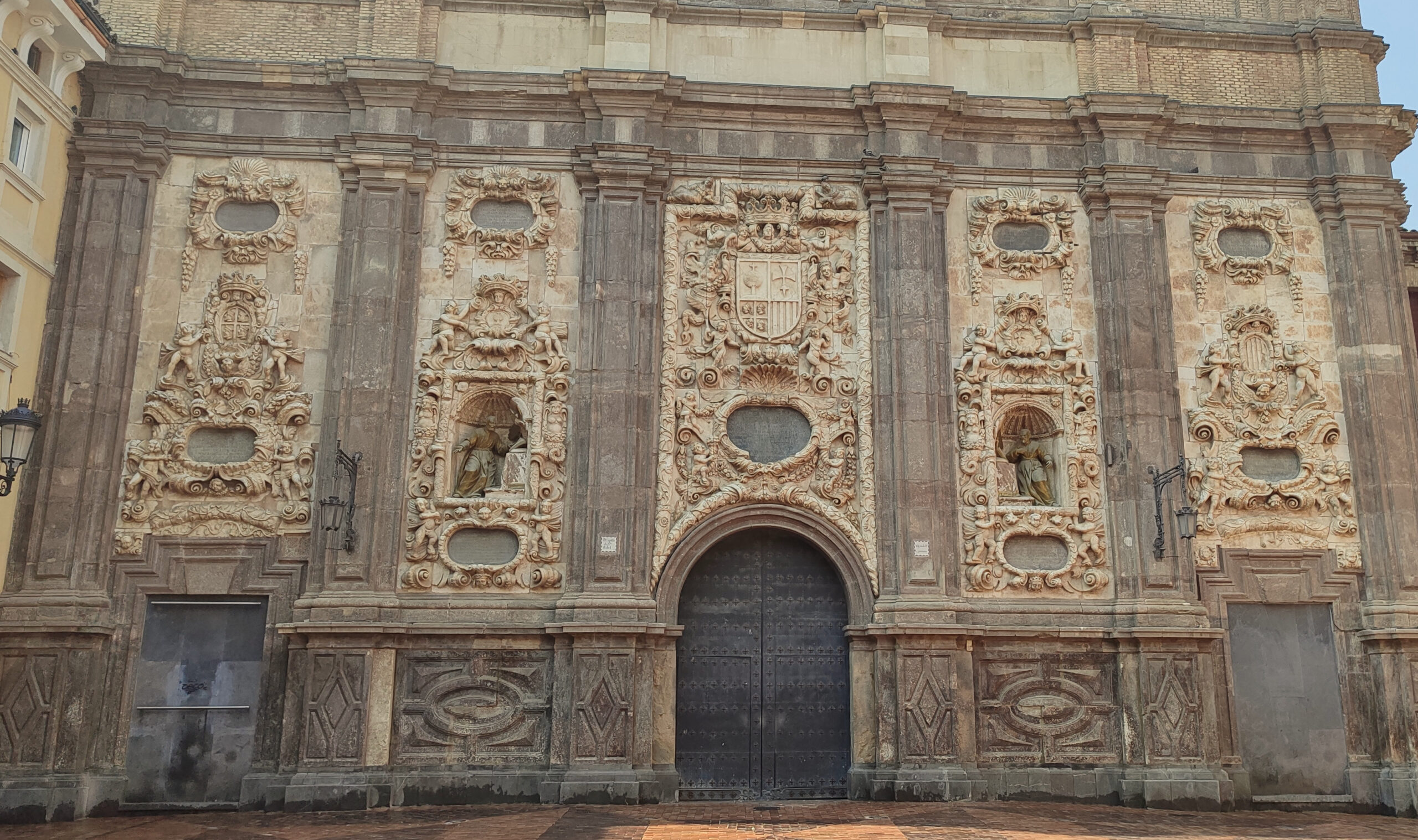 En 1704 terminaron las obras de la zaragozana iglesia de Santa Isabel (y San Cayetano); habían empezado un cuarto de siglo atrás promovidas por la Diputación del Reino de Aragón. En su portada, que da a la actual plaza del Justicia, puede observarse una rica ornamentación en alabastro en la que destaca, a lo largo de cuatro calles, los cuatro cuarteles que, en la actualidad, tiene el escudo aragonés, tal y como lo establece la Ley 2/1984, de 16 de abril: el árbol de Sobrarbe, la Cruz de Íñigo Arista, la Cruz de San Jorge con cuatro cabezas de moros cortadas, también llamada de Alcoraz, y los palos o barras de Aragón. En la calle principal, sobre la puerta de acceso, el escudo completo en la misma disposición que establece la dicha norma. Trataremos el origen y significado de las tres primeras armas; las barras de Aragón ya fueron comentadas extensamente en otro momento. De igual manera, aludiremos a la disposición de los cuarteles y las diversas variantes que han existido.