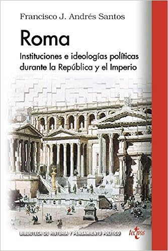 En Historia de Roma tenemos el de F.J. Andrés Santos, Roma. Instituciones e ideologías durante la república y el Imperio (Tecnos, 2015). Y tan de moda que está la corrupción, y que siempre lo ha estado: Corrupta Roma, de P.A. Fernández Vega (La Esfera, 2015). En este mismo bloque sobre la política romana, La diplomacia romana en época Republicana, de E. Pitillas Salañer (Libros Pórtico, 2015). Corrupción y diplomacia que no se puede llevar a cabo sin una buena comida, Sabores de Roma, editado por Pedro A. Carretero Poblete, y que recoge las actas del I simposio internacional sobre gastronomía antigua romana (Medina de las Torres (Badajoz), 9-10 de mayo de 2014).